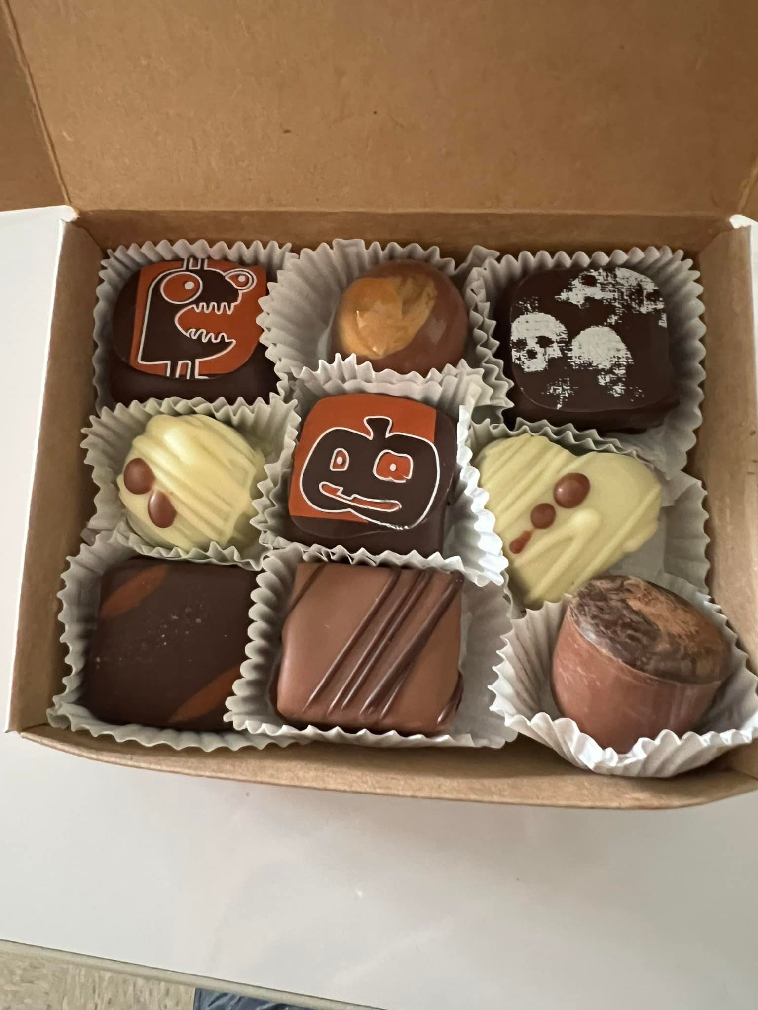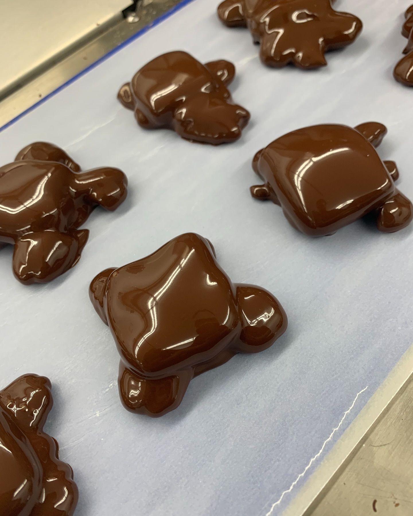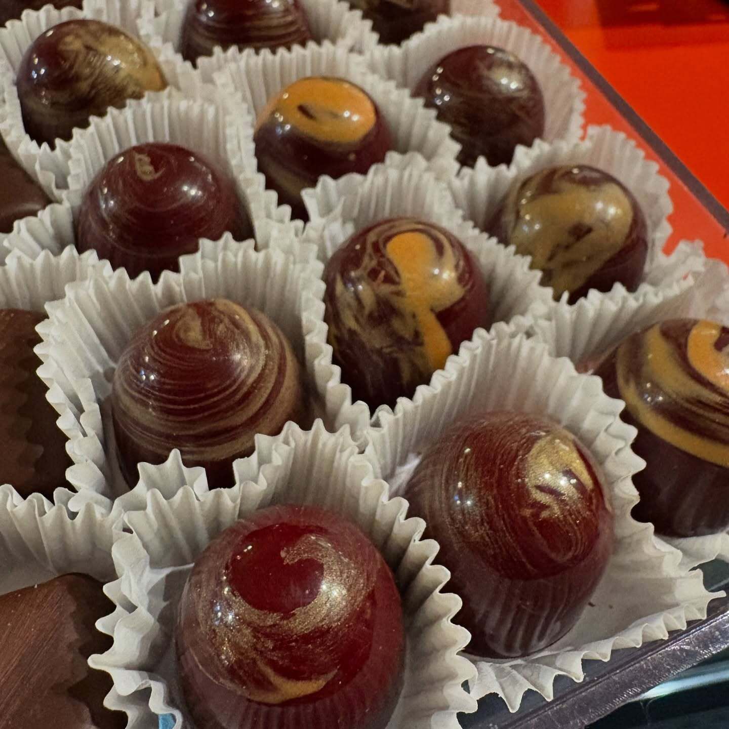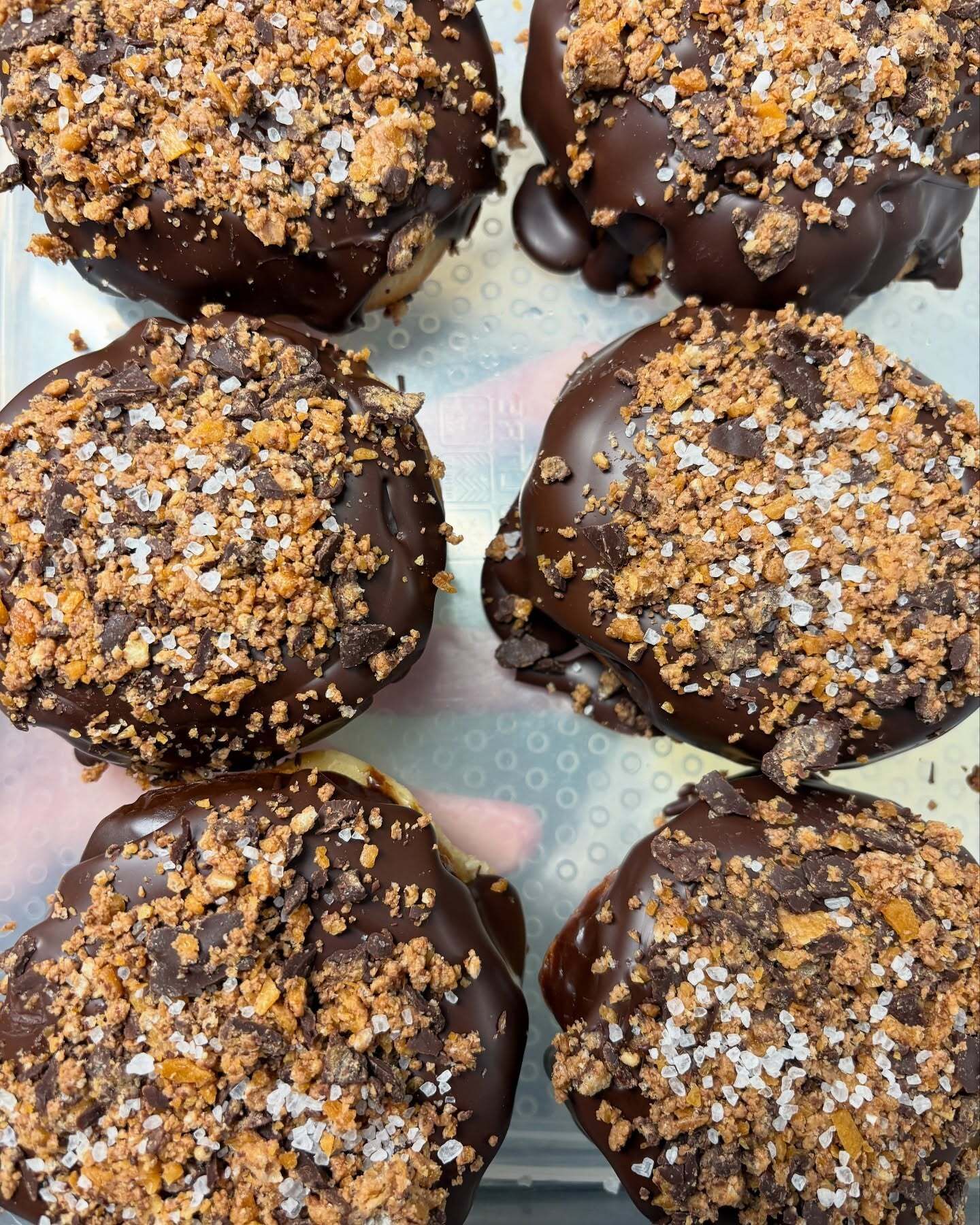 Our Salted Caramel and Pecan Turtles are always the biggest sellers. Some of our more fun ones are our vegan options, the Passionfruit Caramel, and Tahini. Currently, I am working on Key Lime Puppy Chow. I’m also bringing back the Frosty and Fry, which replicates that feeling of dipping a fry into a chocolate milkshake.