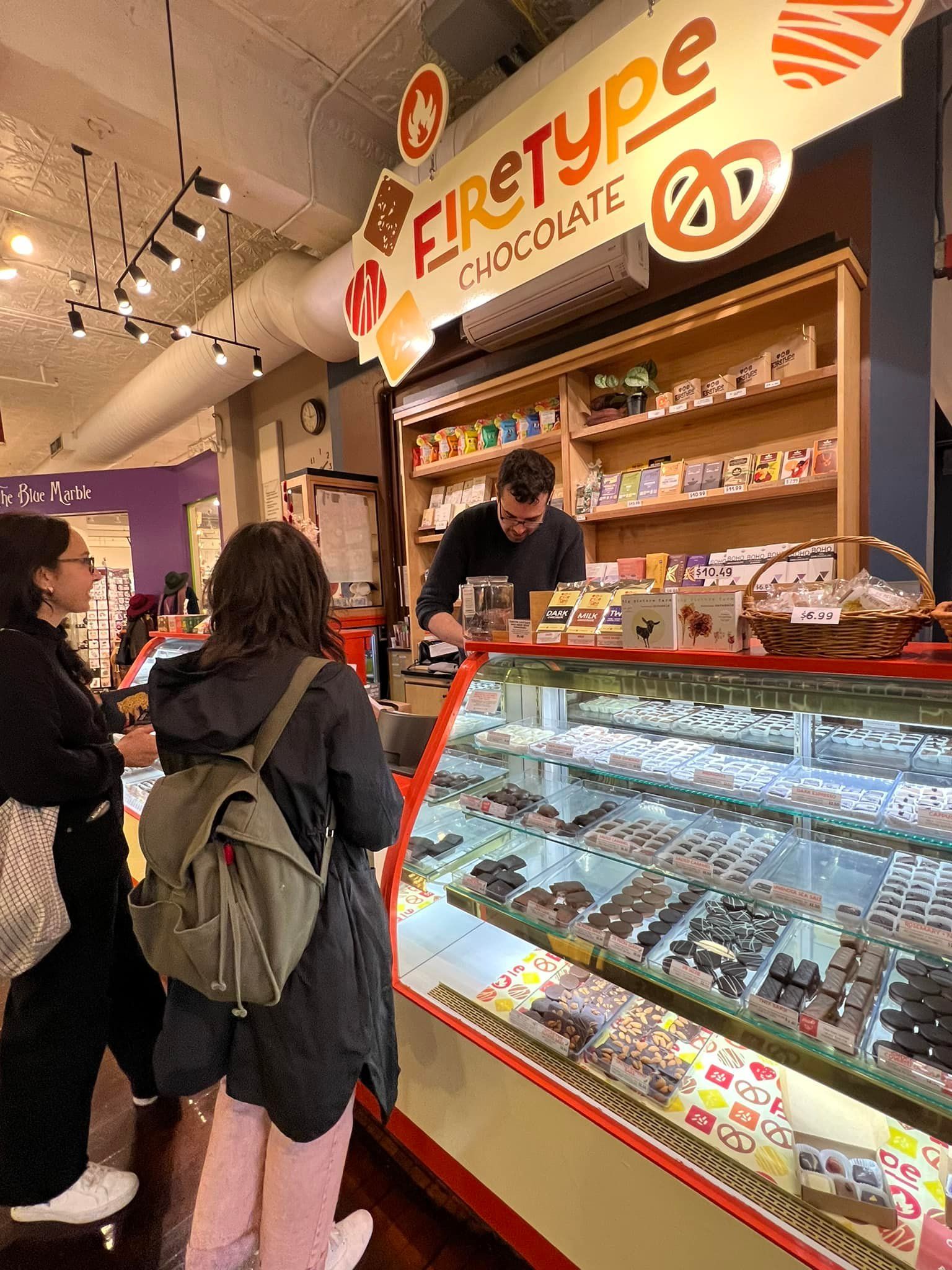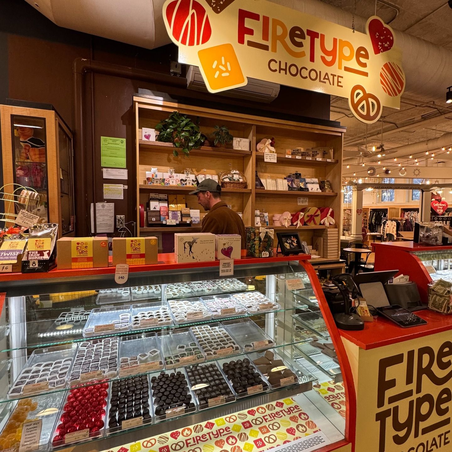 Our spotlight for this month shines upon Dan McKenney, owner of Firetype Chocolate on Level 1. Dan’s roots in the building run deep, starting at Cornucopia as a cashier then transitioning the former Heavenly Chocolate to become the fiery, unique chocolate shop that reflects his creative personality and commitment to making chocolate both fun and elevated.
