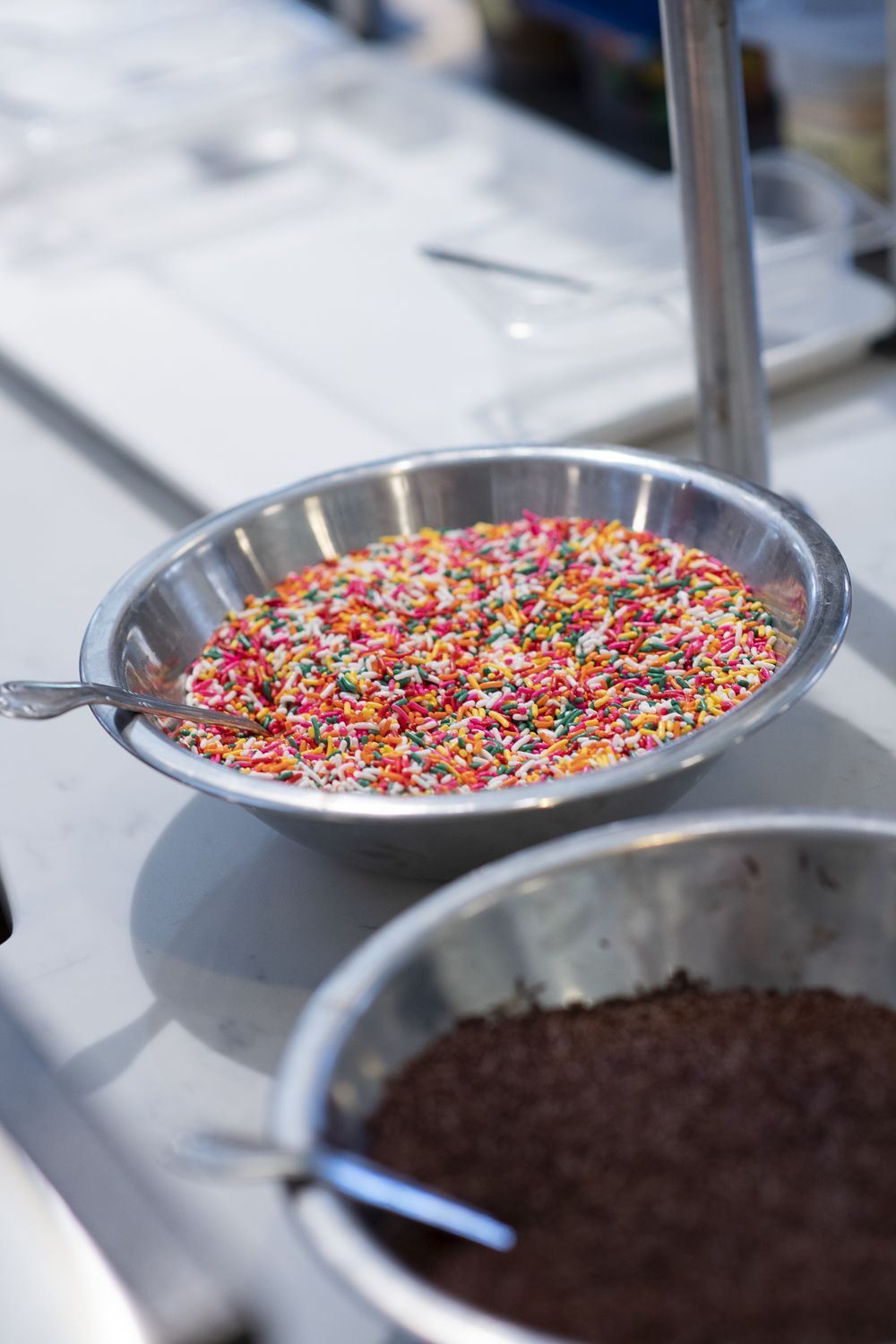 We also love asking customers what they’d like to see. For example, we had a contest earlier in the year and the two flavors that won were a Green Tea Matcha with a Raspberry Swirl and a Dubai Chocolate. We make a deconstructed version of the Dubai Chocolate with tahina, phyllo dough, chocolate, and pistachio. It’s just fun to get creative and expand our horizons with unique flavors.