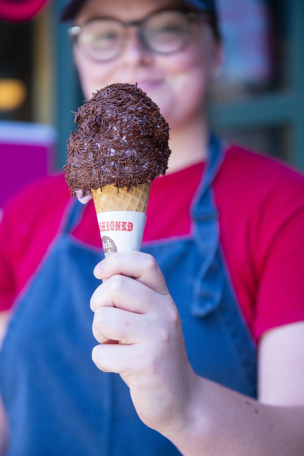 We’ll probably be bringing back the Event of Gluttony this winter—the great ice cream eating competition. You get three minutes to eat as much ice cream as you can with a metal spoon, and you can’t hug your tub because that melts the sides. We also hope to bring back the Margaritaville event in January or February, when we offer all of the summer flavors, decorate the store like we’re at the beach, and play Jimmy Buffet tunes. It’s nice to have these events to look forward to in winter!