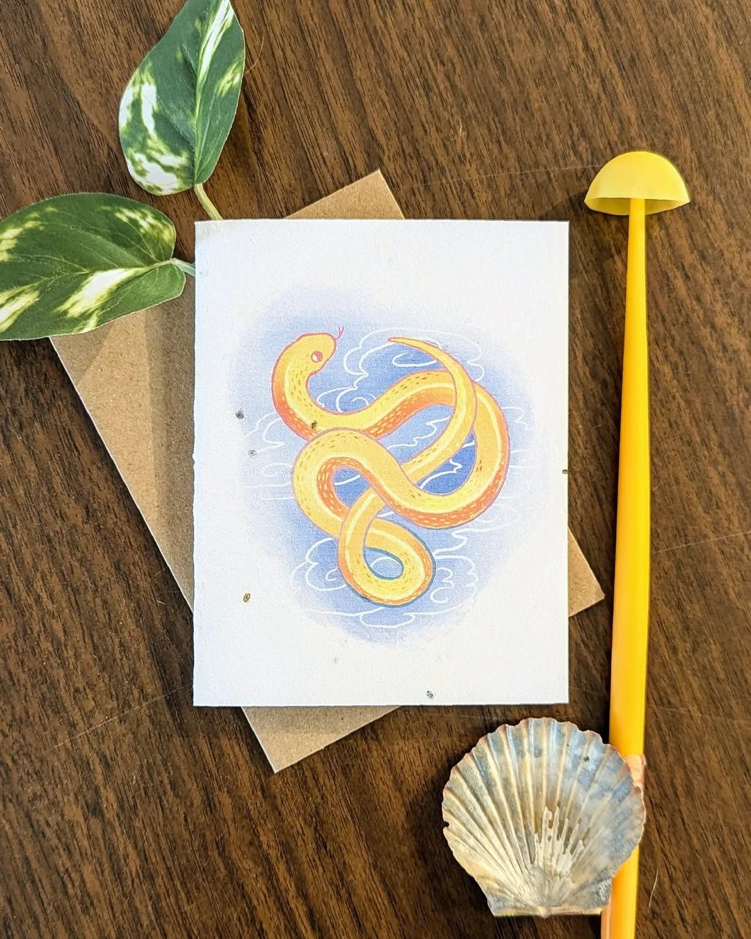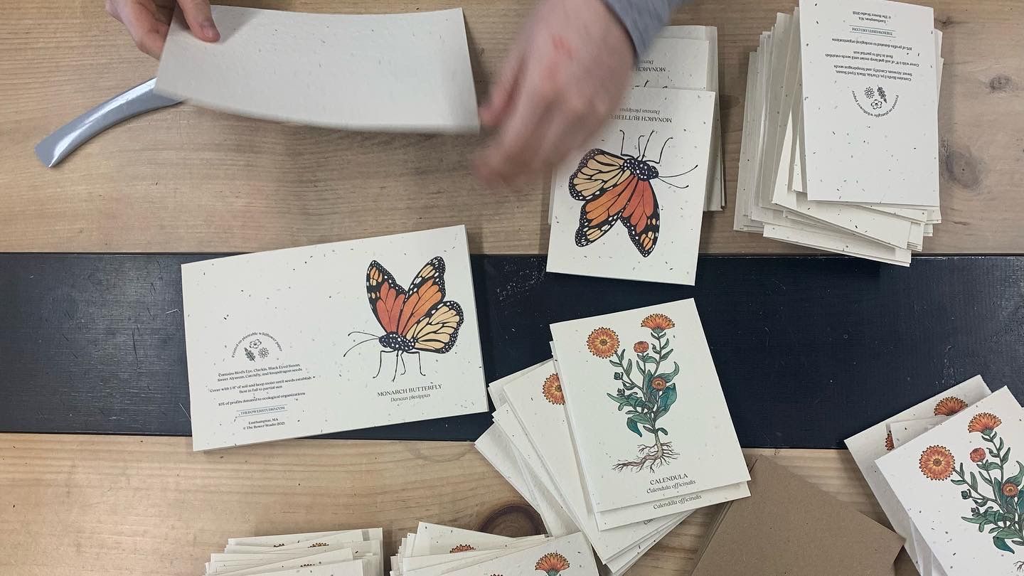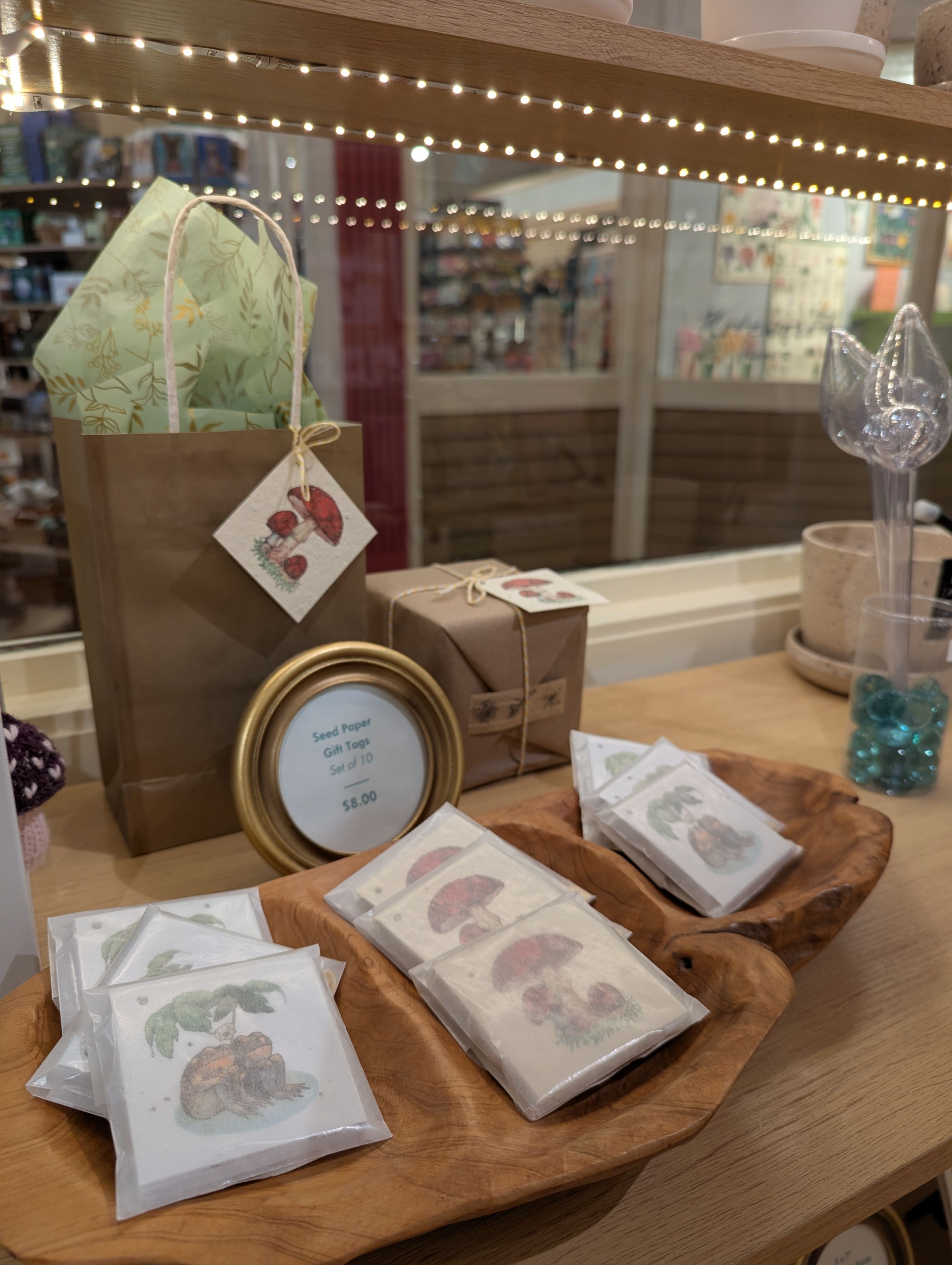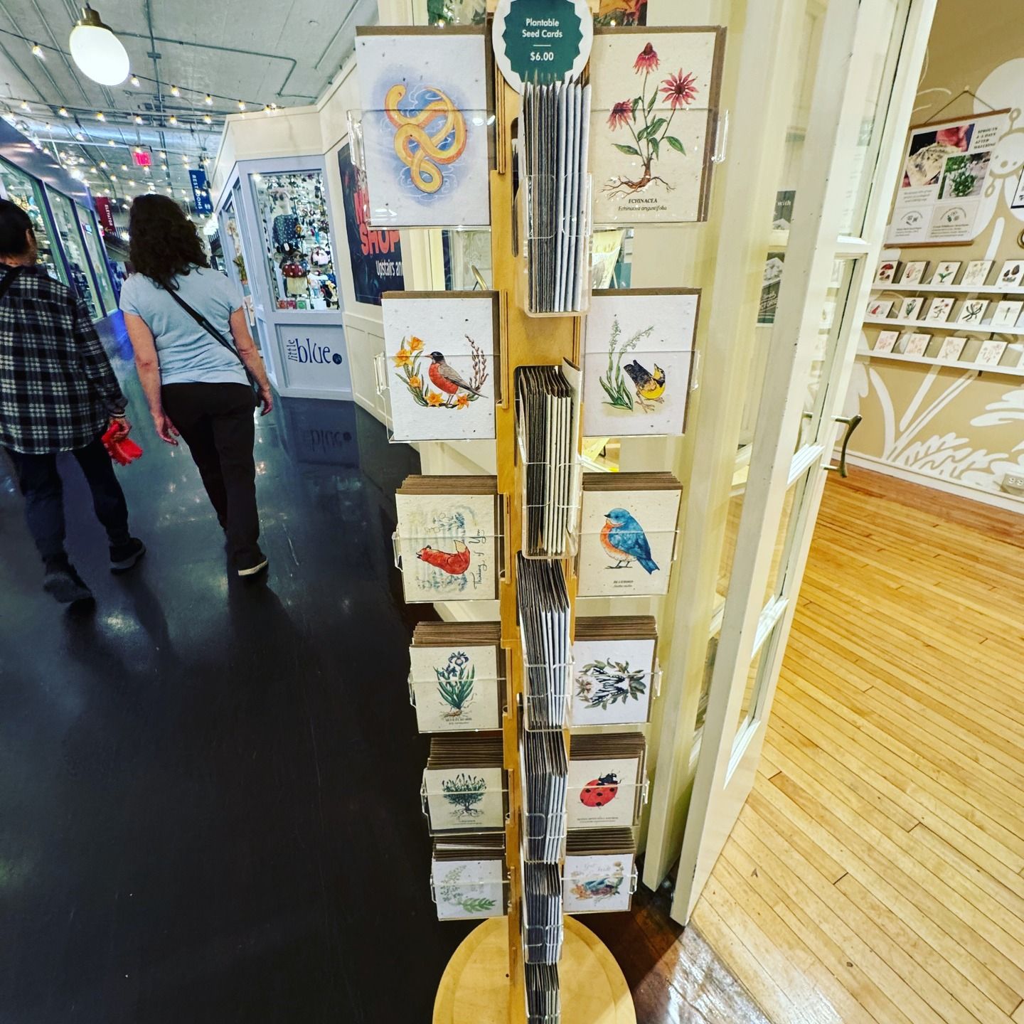 We began as the Bower Studio in 2011 and had a retail shop located in Amherst. At the time, we were an herbal apothecary along with selling our plantable seed cards. Since Covid, we did a rebrand and switched to focusing on the cards, working out of our studio, which was located in Eastworks at the time. Once our refreshed brand got rolling, we felt the next logical step was a brick-and-mortar shop, especially since people were asking where they could purchase our products. We were lucky that both Assemble and 25 Central were carrying our cards, so we had visibility in downtown shops already.