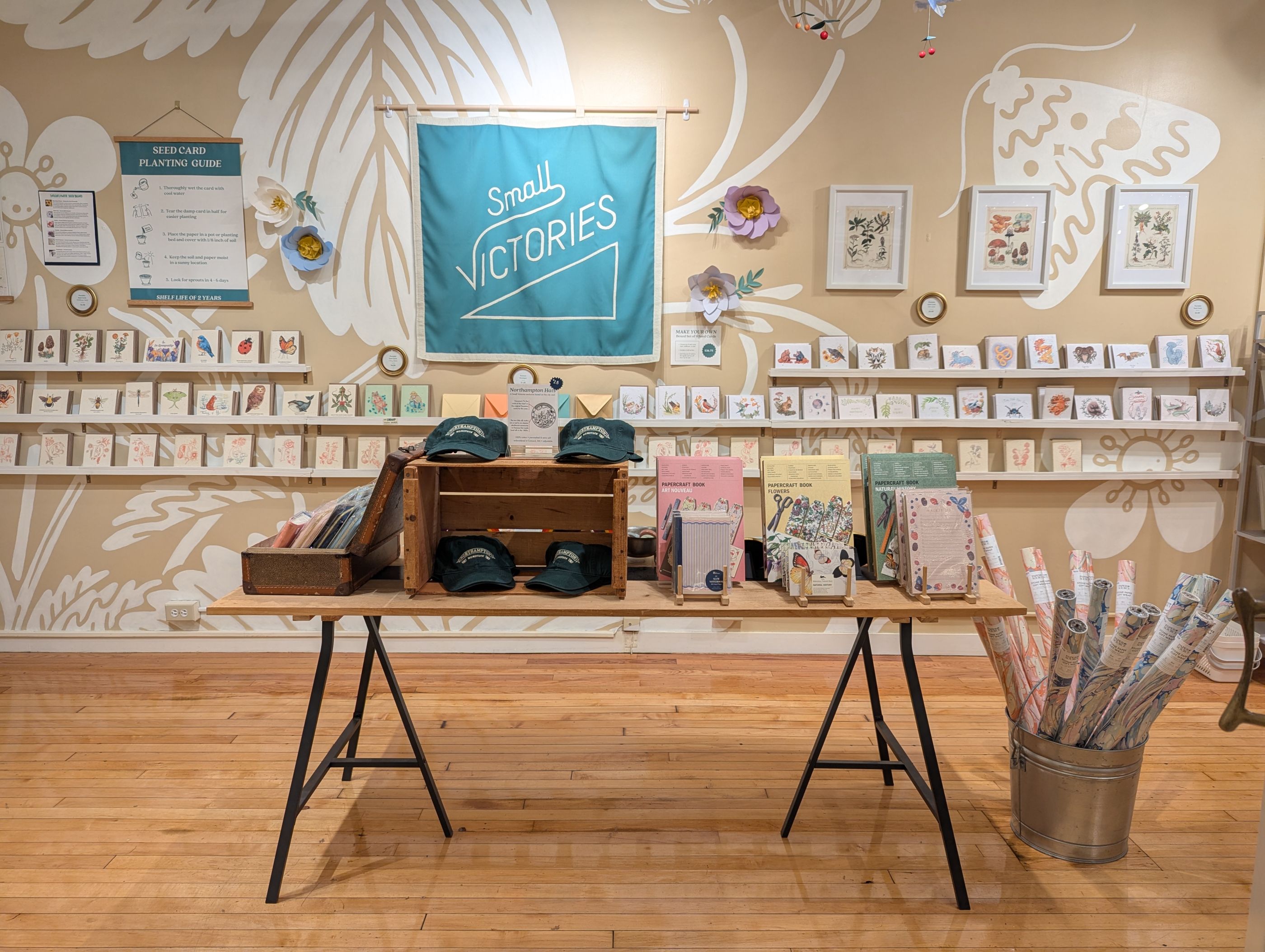 Small Victories offers a beautiful array of creative and thoughtfully-made items, from plantable seed cards to pronoun pins to a recently released stationery-focused line. The business brings the beauty of animals and the natural environment to their unique creations and to the welcoming energy of the store. Stop by to browse, shop, and discover something truly unique and meaningful.